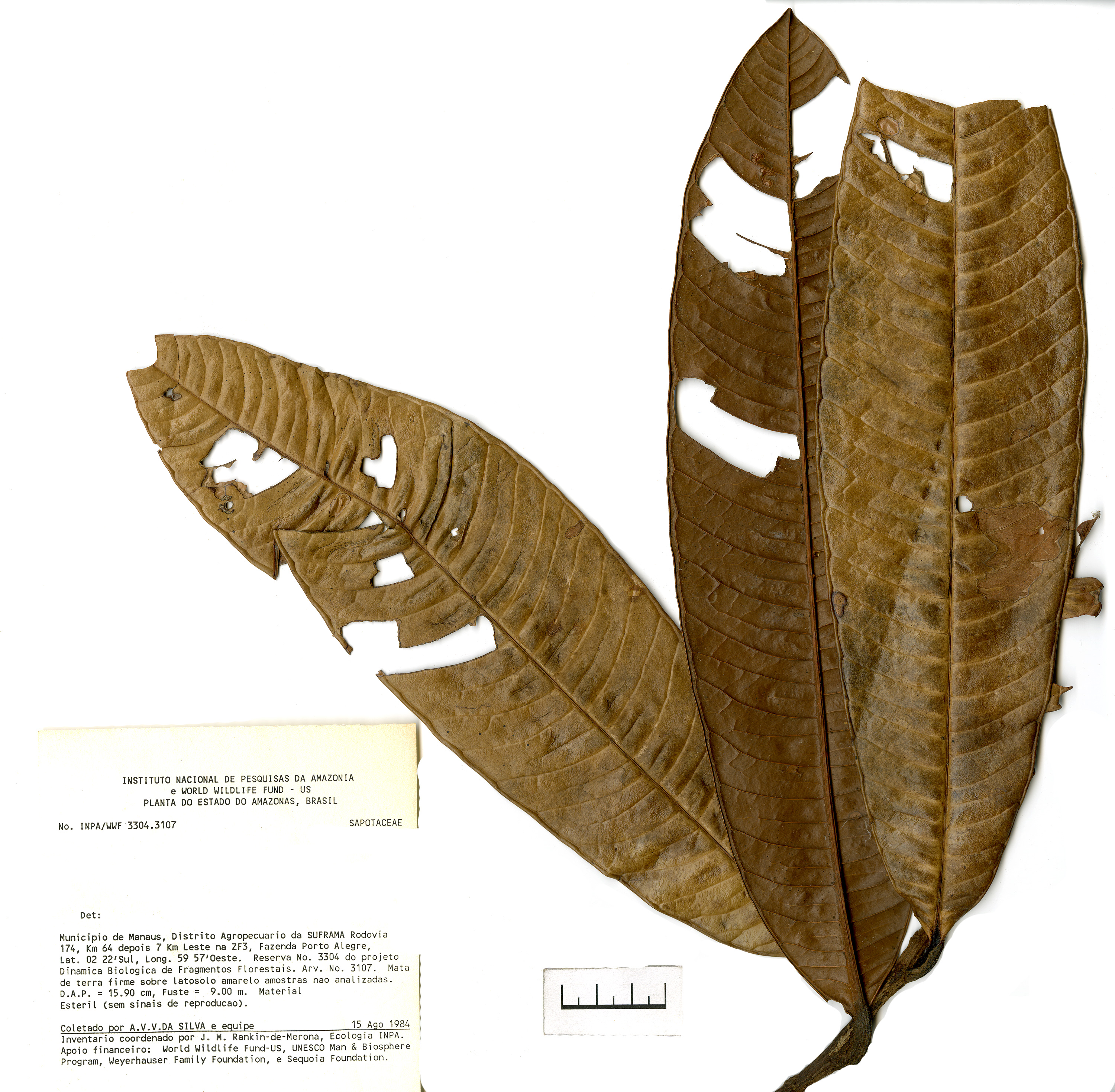 . (2015). By Projeto Dinâmica Biológica de Fragmentos Florestais. Collection: Pereira, M.J.R. #3304-3107 on 1984-08-17, from Quadrante 118, Parcela 3304-5, Reserva 3304, Fazenda Porto Alegre, Amazonas, Brasil (PDBFF). Project: PDBFF-Data. Instituto Nacional de Pesquisas da Amazônia (INPA), Manaus, Amazonas, Brasil. Type: Image. License: CC-BY-NC-SA 4.0. uuid: inpa-odb-dc2850df-b8d0-4201-a35a-b0d437f00525, url: https://opendb.inpa.gov.br